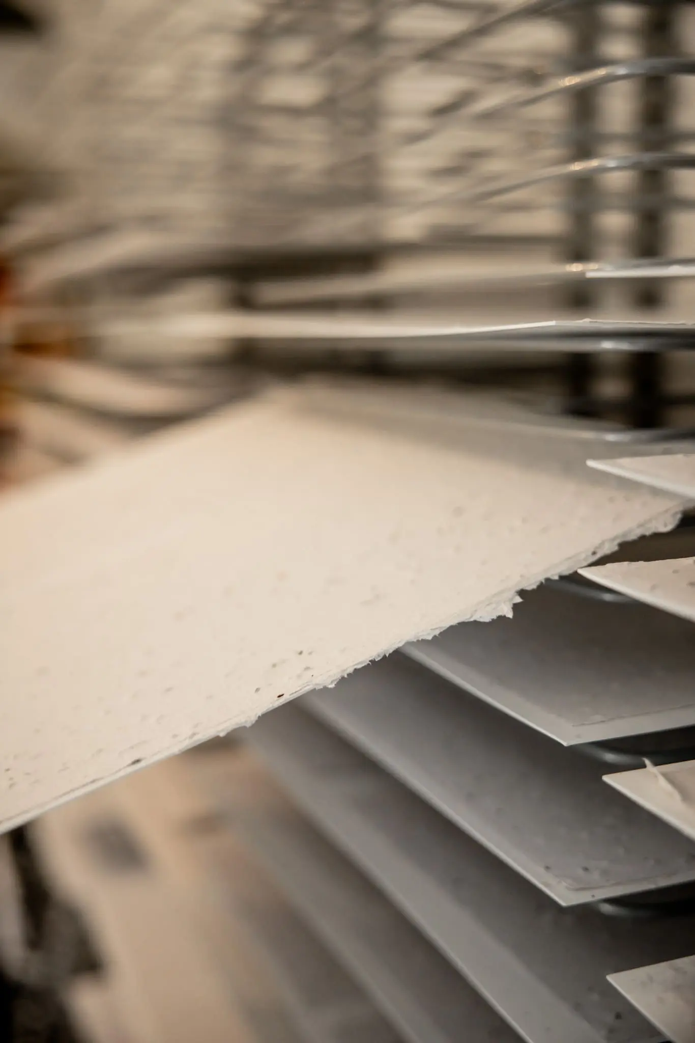 Produktionen af Spirpapir er et langsomt håndværk. Genbrugspapir bliver opløst i vand, blandet med frø og støbt til nye ark – helt uden kemikalier. Papiret tørres nænsomt, så frøene bevarer deres spireevne. Resultatet er et papir, der bruger markant mindre vand end traditionel papirproduktion og samtidig giver noget tilbage til naturen.