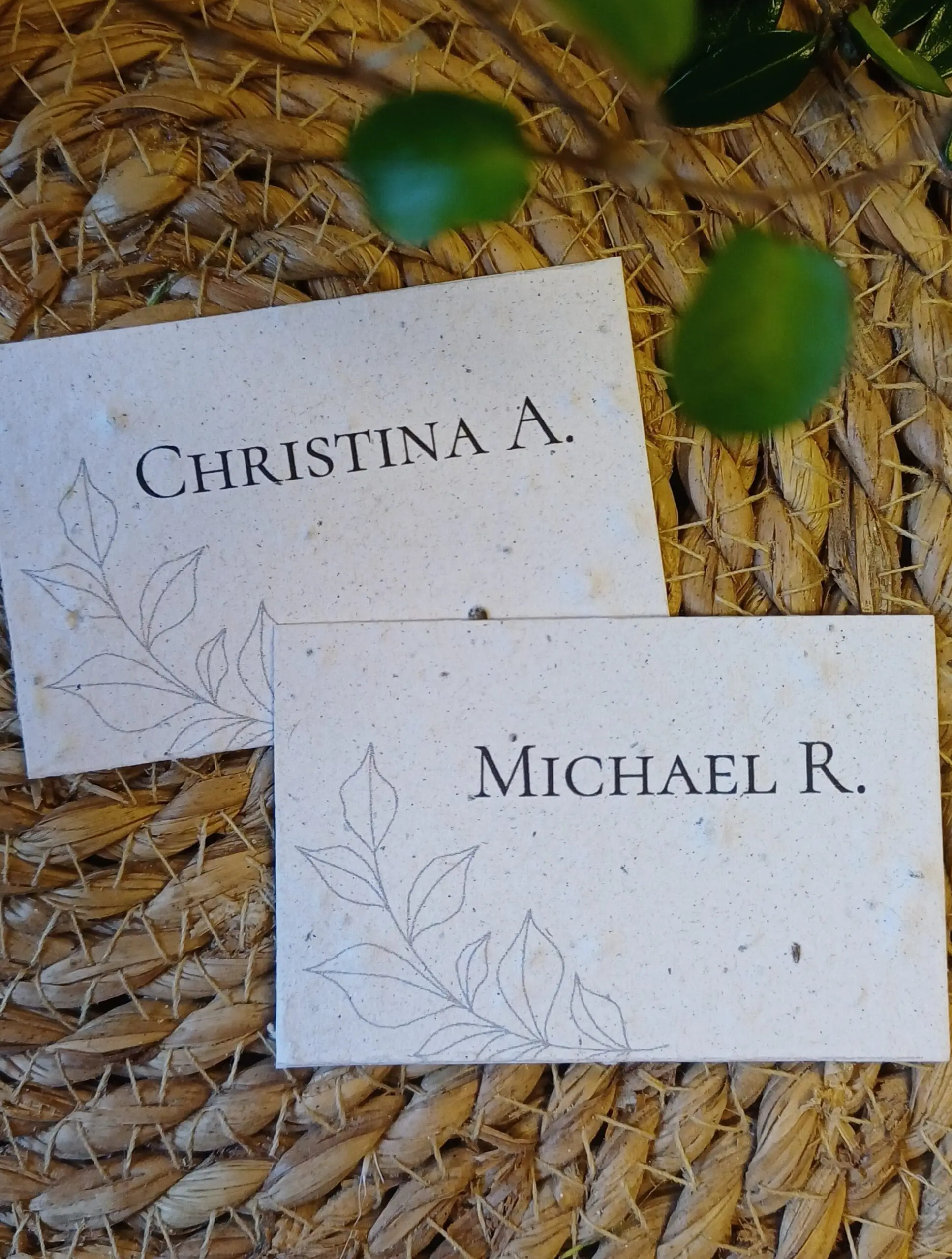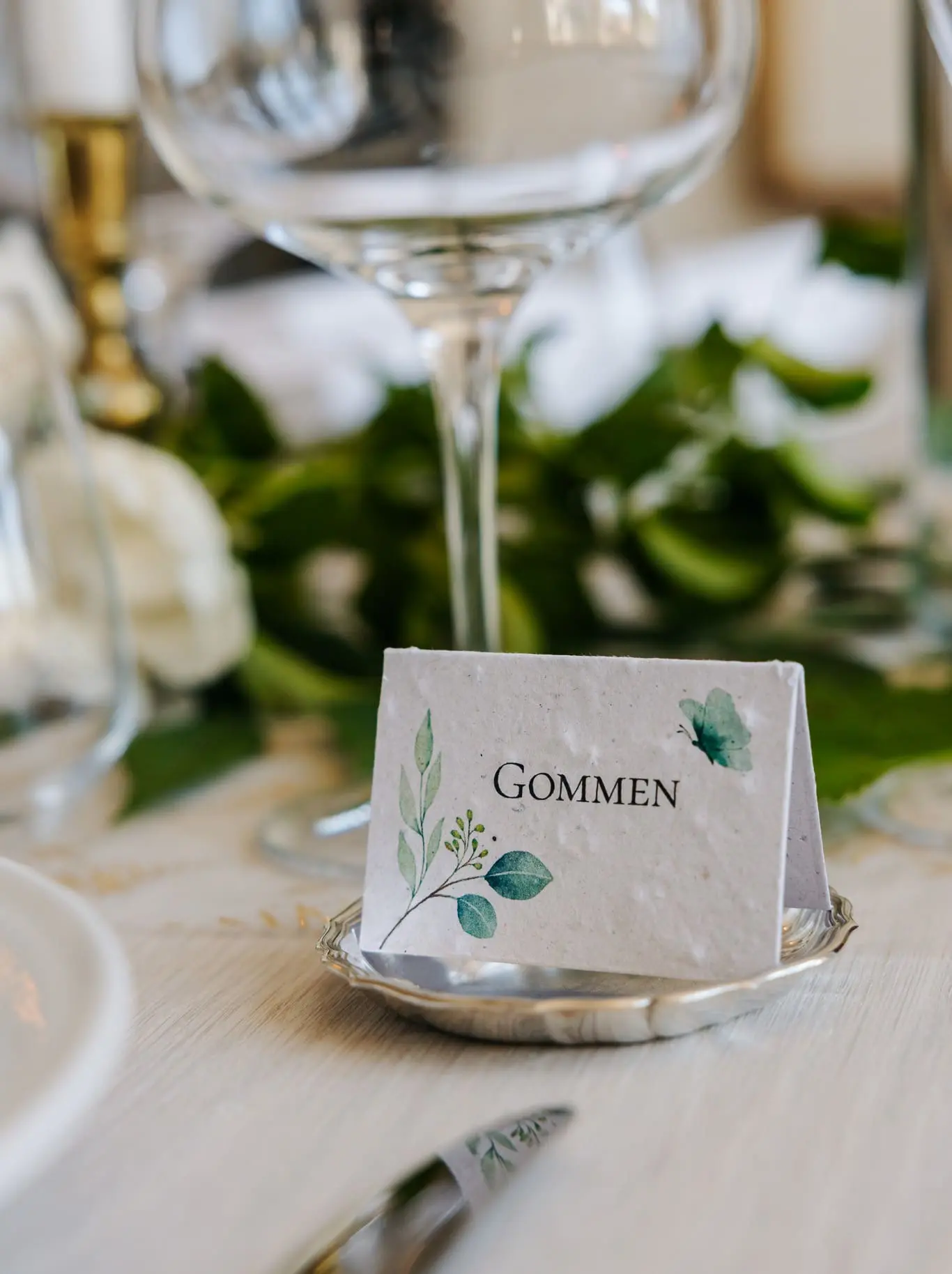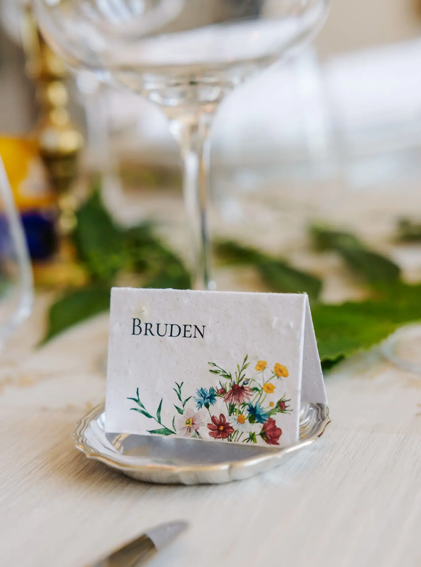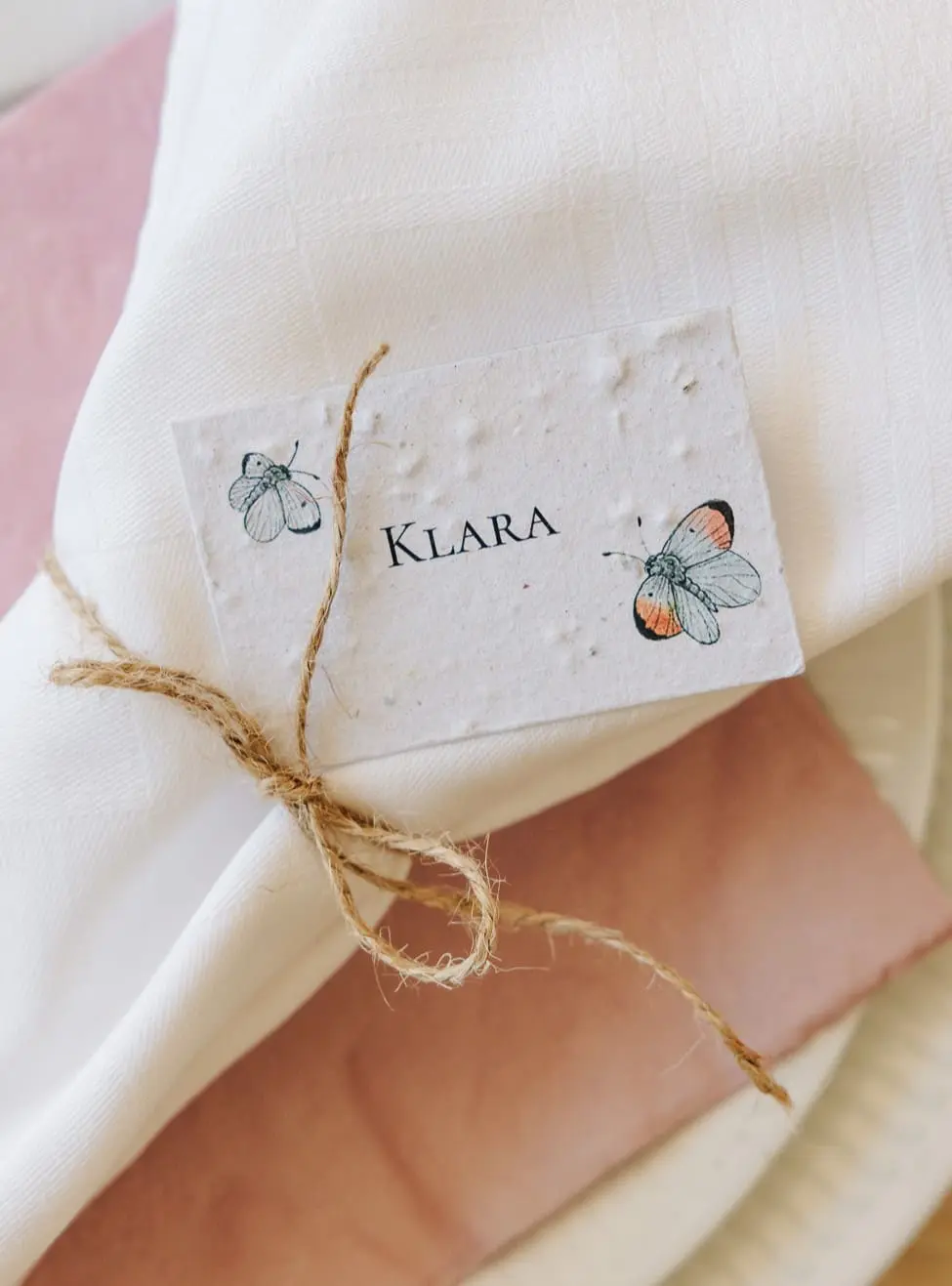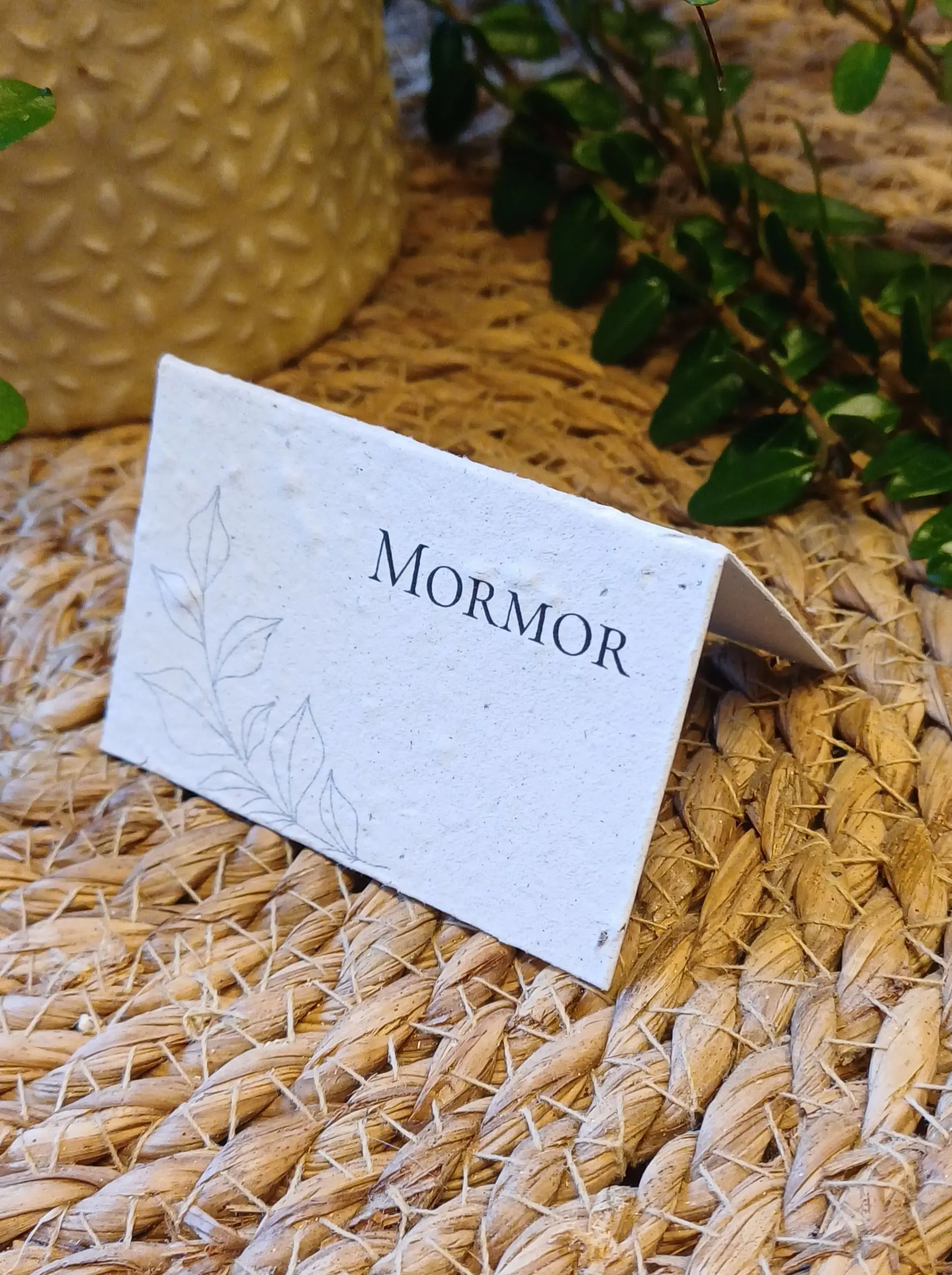 Skilte med bordnumre i frøpapir, som kan blomstre bagefter.