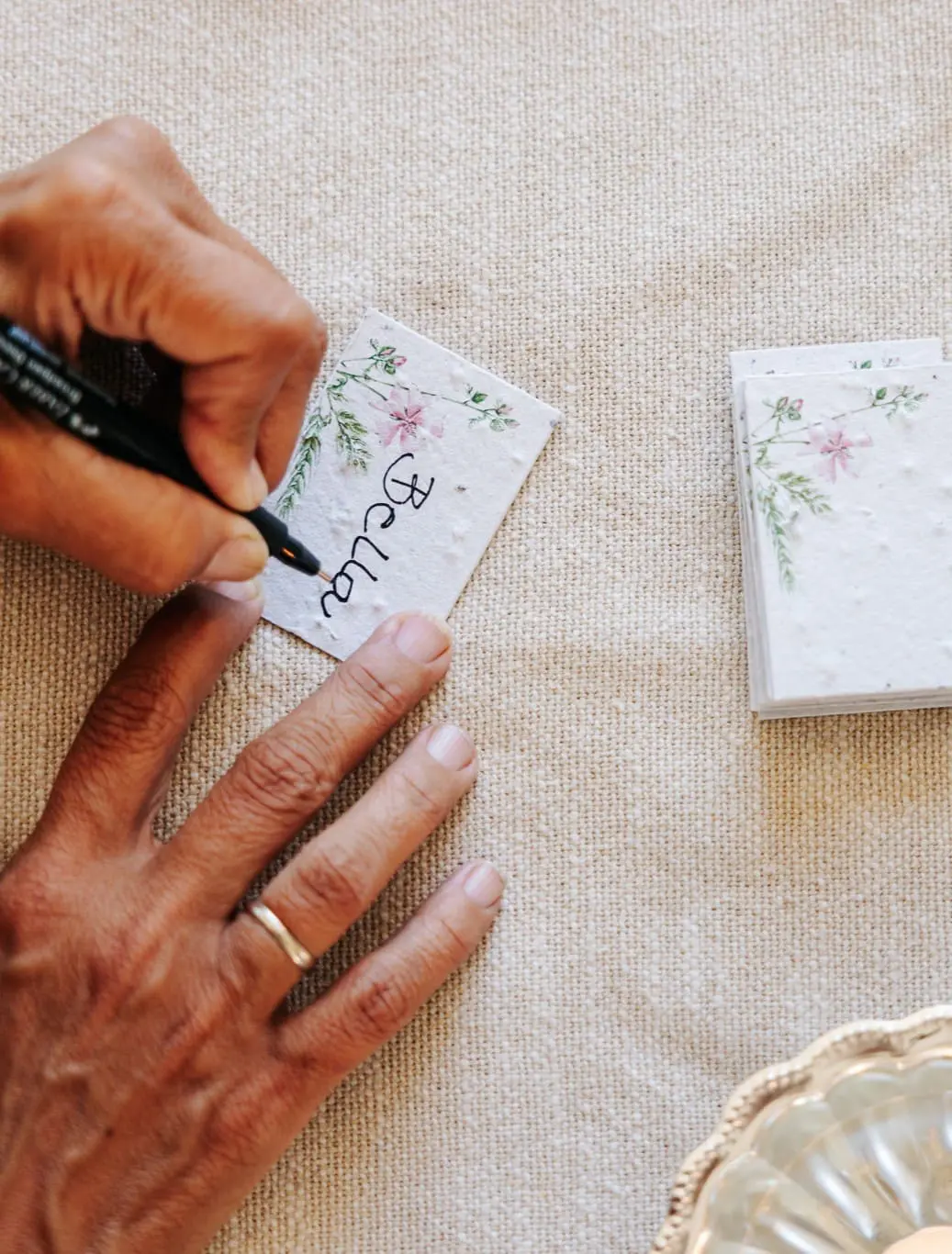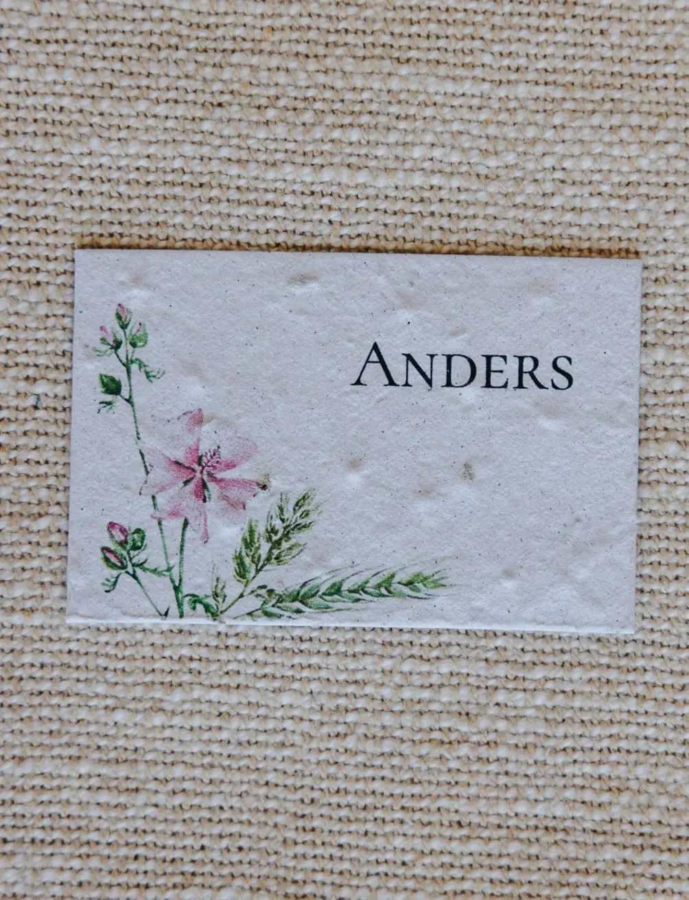 Bordkort af frøpapir, som kan plantes efter brug