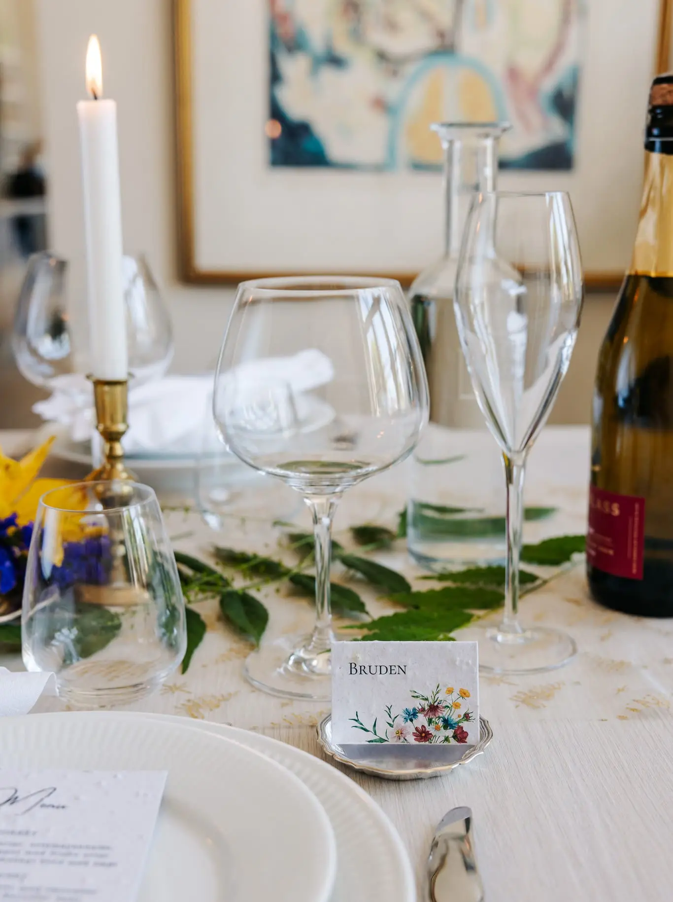 Gæstelisten skal sendes i Excel med et navn pr. felt – og skal skrives præcis, som det skal stå på bordkortet. Skriv alle navne kun med stort forbogstav, resten små bogstaver. Skrifttypen tilpasses inden tryk, og bliver som på billedet.
