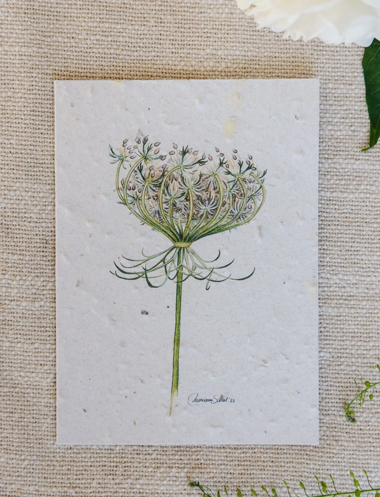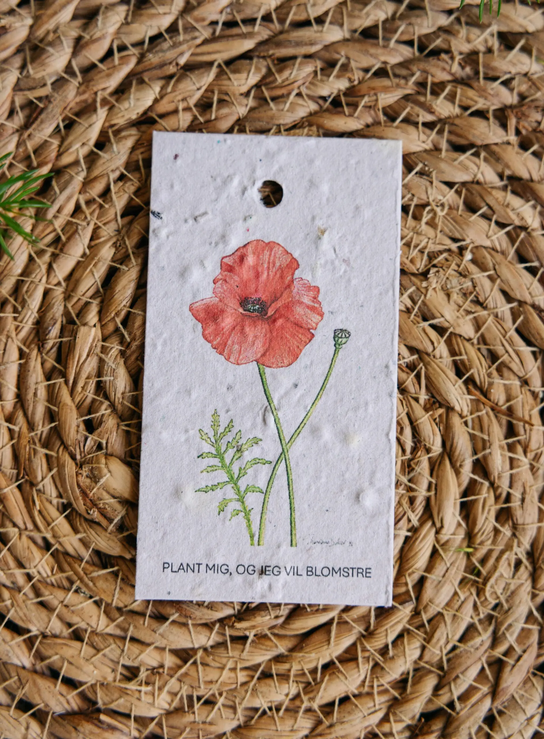 Papiret er håndlavet i Kolding af genbrugspapir og en frøblanding af 27 hjemmehørende planter indsamlet i Danmark. Det kan plantes efter brug i stedet for at ende som affald. Når du planter papiret, opløses det og frøene begynder at spire. Inden længe vil du se smukke blomster springe ud af det, der engang var et stykke papir.