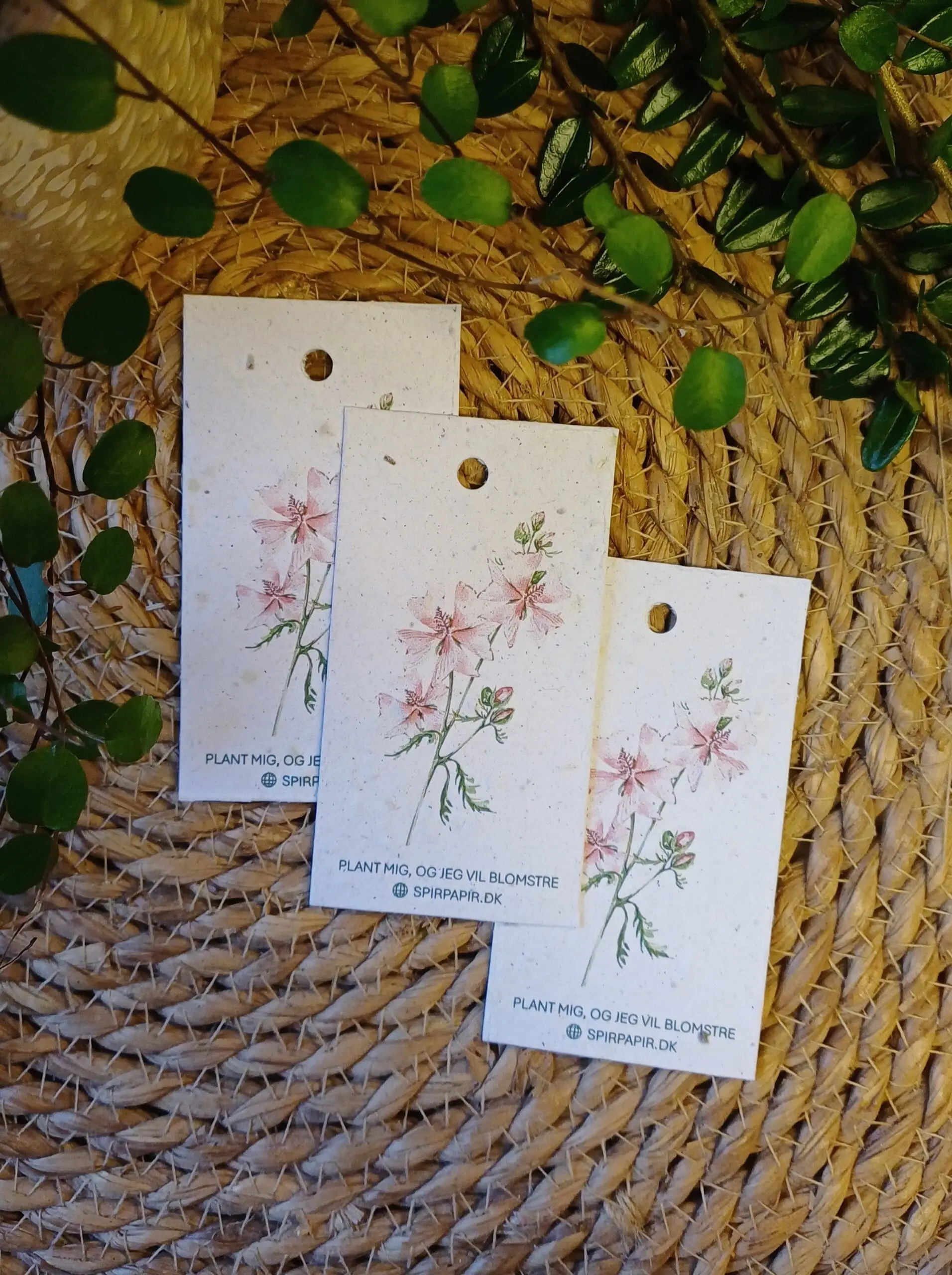 Papiret er håndlavet i Kolding af genbrugspapir og en frøblanding af 27 hjemmehørende planter indsamlet i Danmark. Det kan plantes efter brug i stedet for at ende som affald. Når du planter papiret, opløses det og frøene begynder at spire. Inden længe vil du se smukke blomster springe ud af det, der engang var et stykke papir.