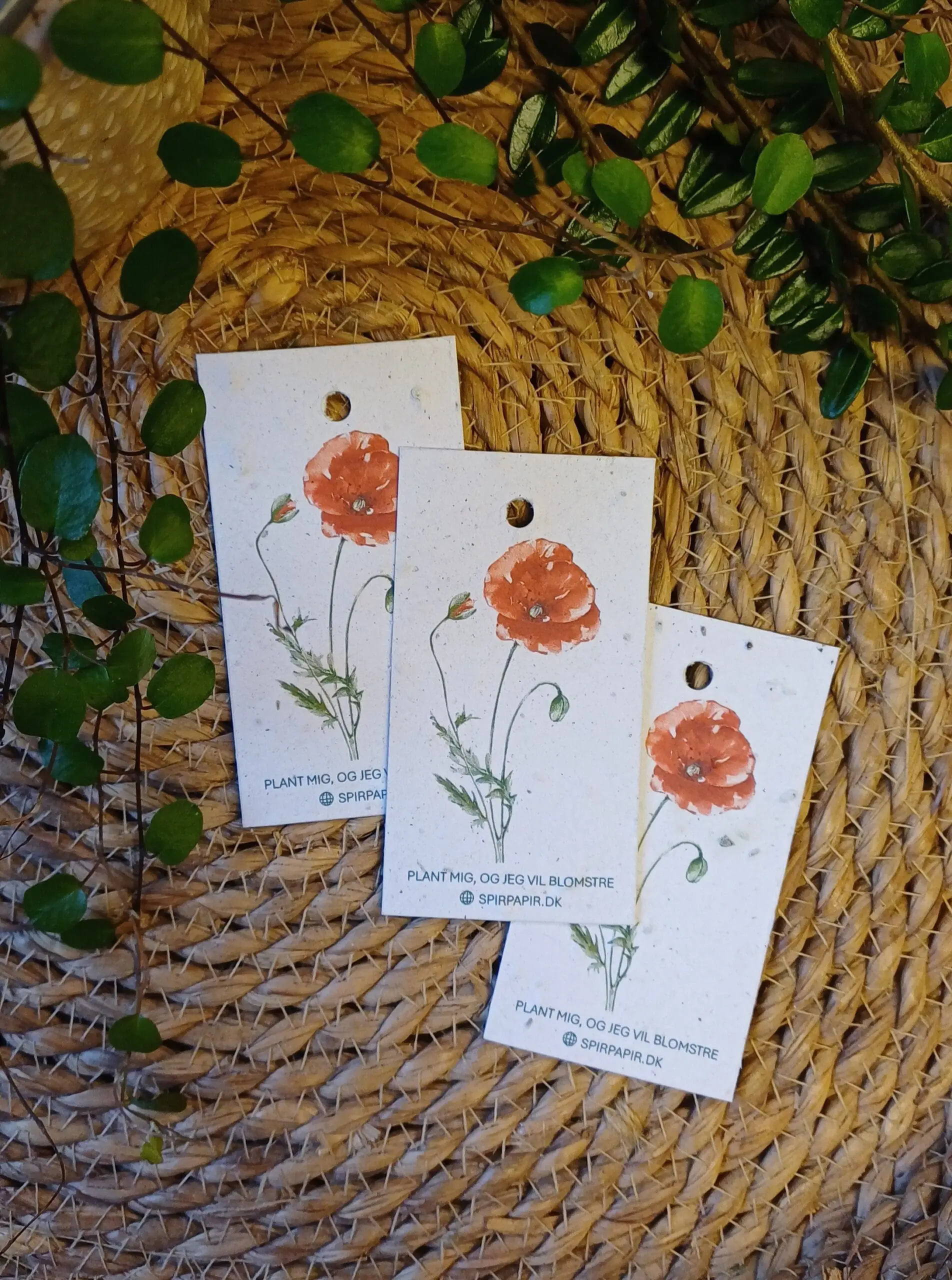 Papiret er håndlavet i Kolding af genbrugspapir og en frøblanding af 27 hjemmehørende planter indsamlet i Danmark. Det kan plantes efter brug i stedet for at ende som affald. Når du planter papiret, opløses det og frøene begynder at spire. Inden længe vil du se smukke blomster springe ud af det, der engang var et stykke papir.