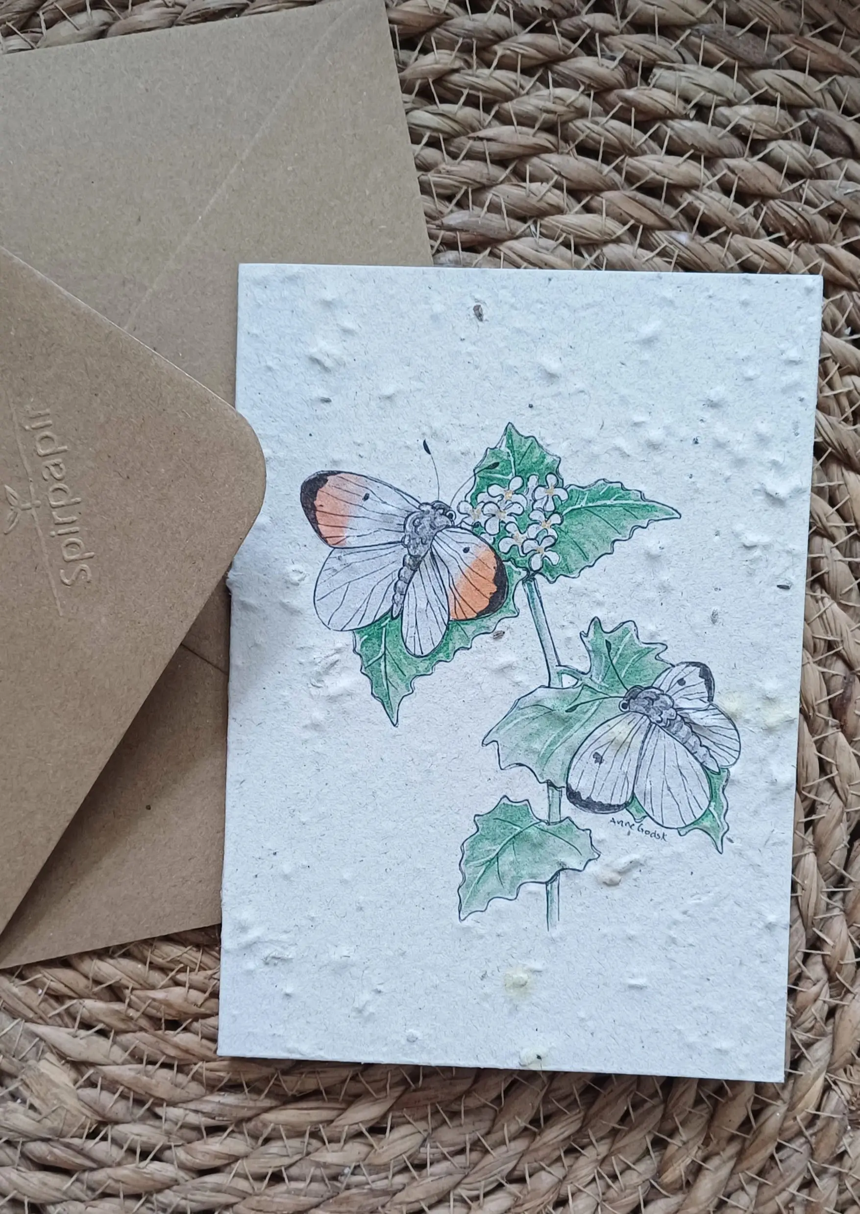 Når kortet plantes, kan både blomster og sommerfugle få et lille nyt hjem.