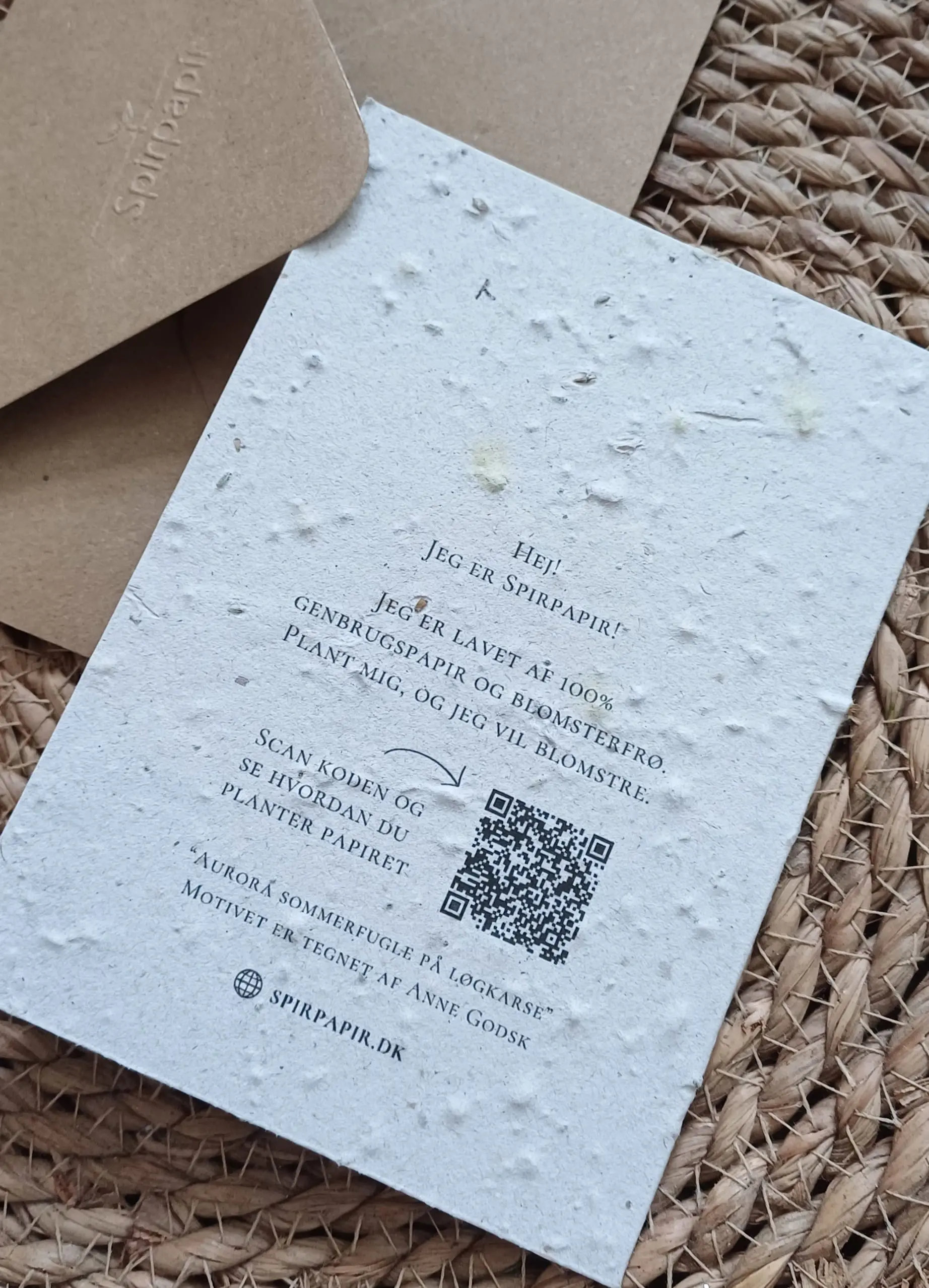 Dette kort er lavet af frøpapir, som produceres i Kolding af genbrugspapir og en frøblanding af over 20 forskellige hjemmehørende planter.
