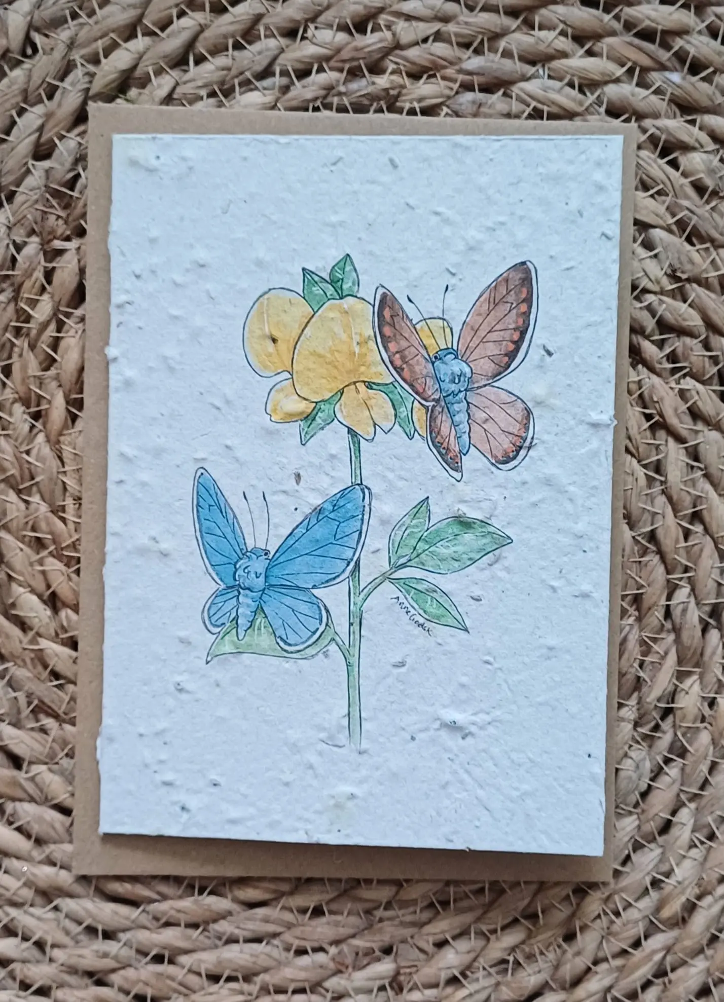Hvert kort er unikt, og derfor skal man forvente, at papiret varierer i tykkelse, farve og tekstur. Nogle af frøene afgiver lidt farve, derfor kan der nogles steder ses små brune eller gule pletter.