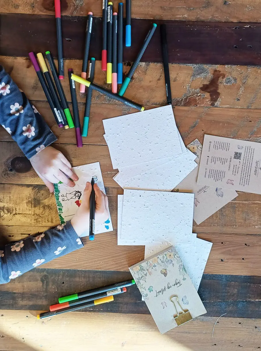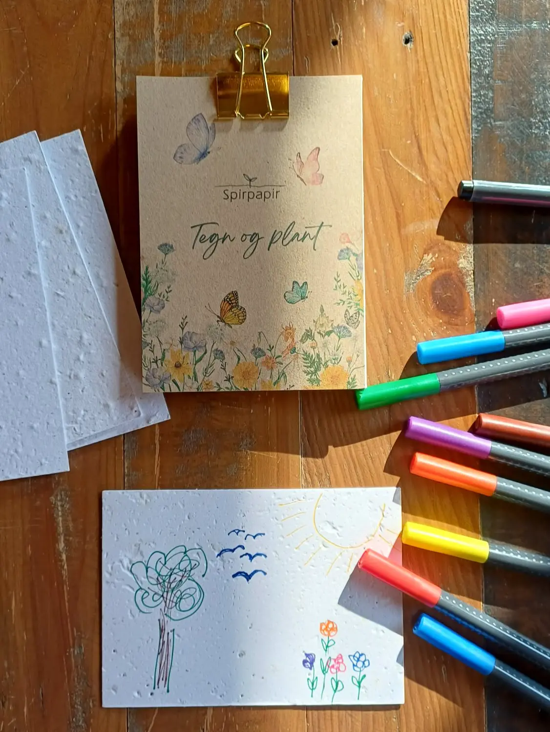 Spirpapir bruges til alt fra kort, invitationer og bordkort til notesblokke, frøbomber, kalendere og kreative papirark. Fælles for dem alle er, at de er håndlavede og skabt med omtanke for naturen – og med en lille overraskelse gemt i papiret.