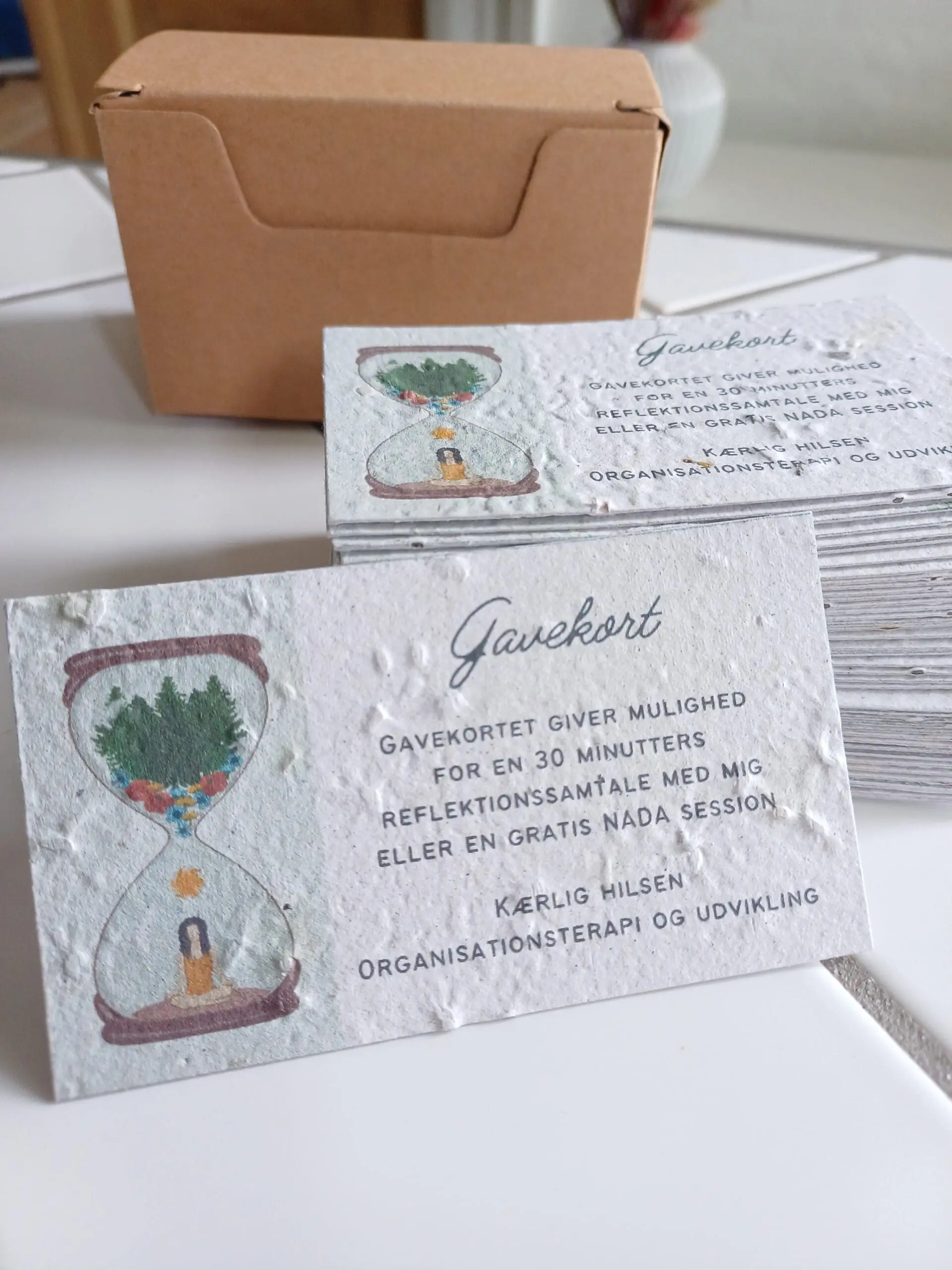 Visitkortene kan plantes efter brug, og vil spire og blomstre i mange år. Papiret opløses og nedbrydes i jorden, og frøene begynder at spire.